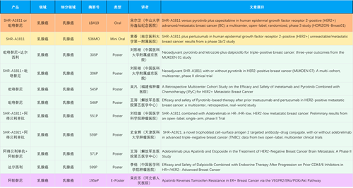由中山大学孙逸仙纪念医院的宋尔卫院士担任主要研究者的SHR-A1811对比吡咯替尼联合卡培他滨治疗HER2阳性晚期/转移性乳腺癌:一项多中心、开放标签、随机、Ⅲ期研究(HORIZON-Breast01),被接收为LBA口头报告,为此类乳腺癌患者带来了新的福音。更多讯息等待大会现场进一步公布,敬请期待!